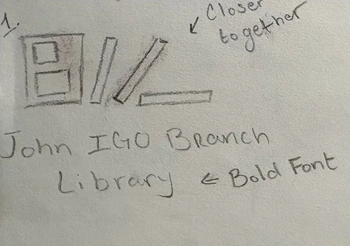 My sketches include lines similar to the original logo to maintain a sense of visual continuity and honor the library’s existing identity. These lines act as a subtle nod to the past while allowing room for a fresh interpretation. They can symbolize books on a shelf, pages, or pathways—reinforcing ideas of knowledge, movement, and discovery. Including them helps the updated logo feel familiar to returning visitors while still looking modern and intentional. Visually, the lines also help balance the bold font choices and structure the overall layout, keeping the design cohesive and grounded.