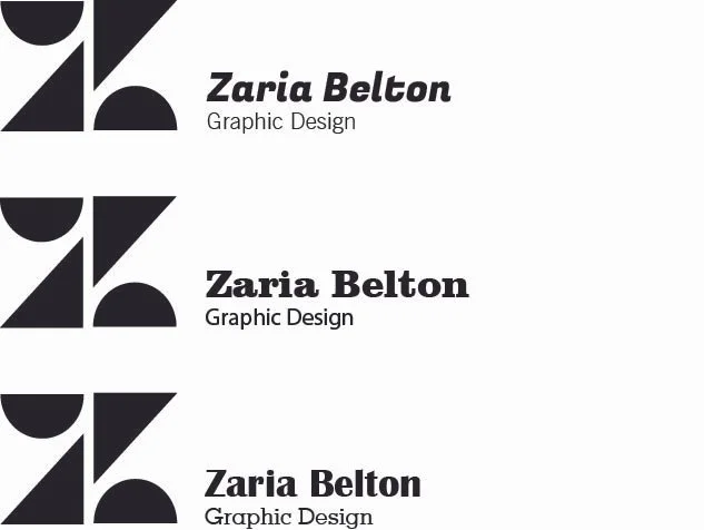 These are the initial digital drafts after I decided which design I wanted to move forward with. While the shaped “Z” was final in terms of design, I was still exploring and searching for the right typography to pair with it.
